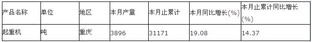 統(tǒng)計數(shù)據(jù)顯示:2013年1-8月,重慶起重機產(chǎn)量為31171.39噸,同比增長14.37%。