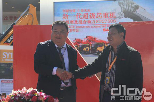 發(fā)布會現(xiàn)場,有客戶與三一重起簽約購買S系列超級起重機(jī)