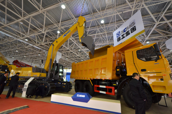 XCT100汽車起重機(jī)是以K系列汽車起重機(jī)十多年成熟的產(chǎn)品技術(shù)為依托,充分借鑒汽車起重機(jī)和全地面起重機(jī)最先進(jìn)的產(chǎn)品技術(shù),融入發(fā)動(dòng)機(jī)、車橋、材料等相關(guān)行業(yè)最新科技成果,為高端用戶量身打造的精品機(jī)型。LW800K-LNG裝載機(jī)成功實(shí)現(xiàn)了LNG在大型輪式裝載機(jī)上的應(yīng)用,填補(bǔ)了國內(nèi)空白,可降低燃料成本35%~40%。作為融合德國施維英科技的創(chuàng)新產(chǎn)品,徐工4橋60米混凝土泵車HB60K創(chuàng)下了全球最長全鋼臂架的記錄。XE370CA挖掘機(jī)首創(chuàng)高原自適應(yīng)模式,可有效防止高原地區(qū)因海拔高度造成的發(fā)動(dòng)機(jī)功率下降。XS303全液壓單鋼輪振動(dòng)壓路機(jī)是集機(jī)電液一體化、高效節(jié)能的路面施工設(shè)備。XZ1000A水平定向鉆機(jī)是在熱銷產(chǎn)品優(yōu)良特點(diǎn)基礎(chǔ)上,進(jìn)行了多項(xiàng)技術(shù)革新的全新中等噸位水平定向鉆機(jī)。SQZ1000K是徐工最新研發(fā)設(shè)計(jì)的起重力矩最大、具有八節(jié)伸縮臂的折疊臂隨車起重機(jī)。6×6全驅(qū)右駕非公路寬體自卸車是下線以來首次對(duì)外亮相。此外,QAY500全地面起重機(jī)、XR280D旋挖鉆機(jī)2臺(tái)模擬操作系統(tǒng),為觀眾提供身臨其境的操作體驗(yàn)。 眾多“拳頭”精品向世界展現(xiàn)徐工高端制造科技和世界級(jí)企業(yè)的雄厚實(shí)力。