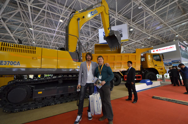 代理商和徐工明星產(chǎn)品XE370CA挖掘機(jī)親密合影