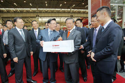 三一人見您來訪,都充滿了熱情,非常高興?!?月28日,老撾人民革命黨中央政治局委員、副總理兼老中合作委員會主席宋沙瓦•凌沙瓦一行來到了三一長沙產業(yè)園考察。在三一重工董事長梁穩(wěn)根、三一集團總裁唐修國等人的陪同下,宋沙瓦•凌沙瓦一行參觀了三一展覽館、18號廠房。在聽取相關匯報后,宋沙瓦•凌沙瓦對三一的發(fā)展表示了肯定,他親切鼓勵三一:“要為實現(xiàn)中國夢做出更大的貢獻?!?BR> “三一是中國最大、全球第五的工程機械制造商。從1989年創(chuàng)業(yè)以來,我們累計為中國及全球各地提供了接近20萬臺各類裝備?!?BR> 在三一展覽館,唐修國詳細談到了公司發(fā)展情況。介紹到三一挖掘機的生產情況時,宋沙瓦•凌沙瓦非常感興趣,主動詢問起三一挖機的主要用途及性能。得知三一挖掘機憑借優(yōu)異品質,被廣泛運用于世界各地的礦產開發(fā)時,他連連點頭,非常高興。據(jù)悉,采礦業(yè)是老撾最重要的部門之一,其發(fā)展離不開各類工程機械裝備。