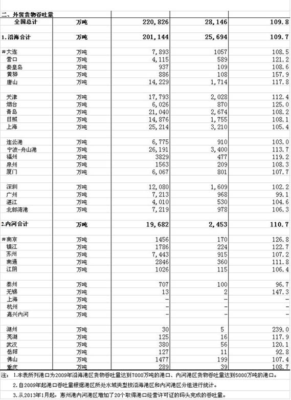 2013年8月規(guī)模以上港口貨物、旅客吞吐量