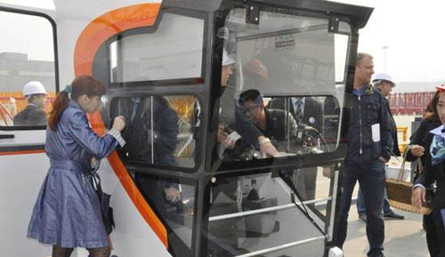 中聯(lián)重科建筑起重機械公司總經(jīng)理黃群女士操作模擬器