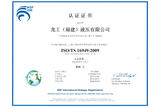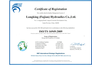 2013年11月1日,龍工(福建)液壓有限公司,高標(biāo)準(zhǔn)通過(guò)了國(guó)際知名認(rèn)證公司——美國(guó)NSF-ISR國(guó)際戰(zhàn)略認(rèn)證公司組織的ISO/TS16949:2009國(guó)際汽車質(zhì)量管理體系的認(rèn)證。這標(biāo)志著龍工(福建)液壓有限公司,不僅能夠大量滿足工程機(jī)械系列油缸的品質(zhì)要求,而且還能夠按照國(guó)際汽車行業(yè)的技術(shù)規(guī)范和質(zhì)量管理體系標(biāo)準(zhǔn),精心研發(fā)、精工制造至高品質(zhì)的汽車系列油缸。