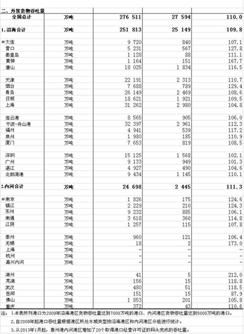 2013年10月規(guī)模以上港口貨物、旅客吞吐量
