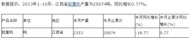 1-10月江西省起重機(jī)產(chǎn)量數(shù)據(jù)統(tǒng)計(jì)