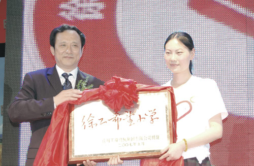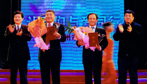 2007年,時(shí)任徐州市委書記徐鳴、市長曹新平向徐工集團(tuán)王民董事長等頒發(fā)慈善獎。