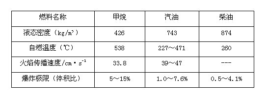 LNG按其主要成分甲烷物性參數(shù)與汽油、柴油對(duì)比如下表: