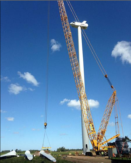 此工程要求精度高,難度大,要求在110米高的工況下吊起98噸風(fēng)電風(fēng)機(jī),QUY650以優(yōu)良的品質(zhì)、穩(wěn)定的表現(xiàn)得到客戶的認(rèn)可,在藍(lán)天下華麗綻放中國風(fēng)采。極大提高了XCMG品牌在當(dāng)?shù)啬酥琳麄€(gè)南美的知名度和影響力。