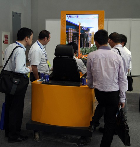 觀眾爭相體驗徐工旋挖鉆機模擬操作系統(tǒng)