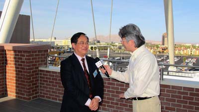 袁總隨后參觀了由上海振華重工提供主體鋼結(jié)構(gòu)建造的世界最高摩天輪“豪客”(High Roller),并現(xiàn)場接受了中央電視臺駐洛杉磯記者采訪。