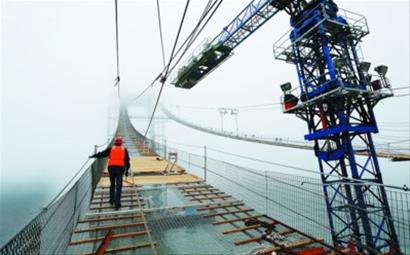 按照目前的計劃,預(yù)計7月中下旬,大橋?qū)⑦M(jìn)行吊裝鋼桁梁的工序;10月份,大橋的路面有望開始鋪設(shè)。屆時,這座國內(nèi)首次采用鋼桁架結(jié)構(gòu)雙層雙向地錨式海上懸索橋的重要工序?qū)㈥懤m(xù)完成。