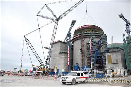 6月9日15點30分,陽江核電4號機組穹頂一次吊裝成功,整個吊裝過程歷時僅60分鐘,此次吊裝使用的正是三一SCC9000履帶式起重機。陽江核電4號機組是國內(nèi)核電行業(yè)遭遇“冰凍”期后,2012年底國家新批復(fù)開啟的機組,本次吊裝為4號機組2017年建成投入商業(yè)運營打下了堅實基礎(chǔ)。