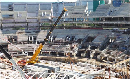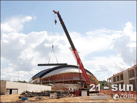 三一起重機(jī)在潘塔納爾世界杯體育場改建工程中施工