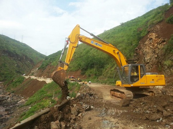 徐工挖掘機(jī)進(jìn)入災(zāi)區(qū)在龍頭山鎮(zhèn)塌方地段緊急搶修道路