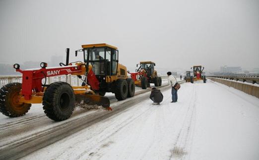 2008年1月,中國南方冰災救援:三一23 臺平地機投入鏟冰除雪,短短九天,破冰總行程近千公里,覆蓋全省十條高速,讓更多人民群眾順利回家。