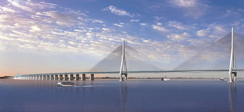 滬通大橋位于長(zhǎng)江澄通河段,在江陰長(zhǎng)江大橋下游45公里、蘇通長(zhǎng)江大橋上游40公里,北岸為南通市,南岸為張家港。滬通長(zhǎng)江大橋全長(zhǎng)11.072公里,按四線鐵路六車(chē)道高速公路標(biāo)準(zhǔn)合建,主跨1092米是目前世界上最大跨度公鐵合建斜拉橋。滬通大橋是魯東、蘇北與蘇南、上海、浙東地區(qū)間最便捷的鐵路運(yùn)輸通道,也是長(zhǎng)三角地區(qū)快速軌道交通網(wǎng)的重要組成部分。