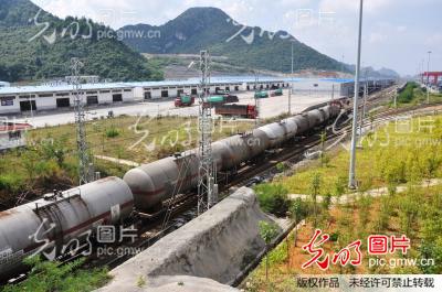 2014年8月28日,在成都鐵路局貴陽(yáng)南站改貌物流中心,一列油罐車正在進(jìn)行調(diào)車對(duì)位作業(yè)。