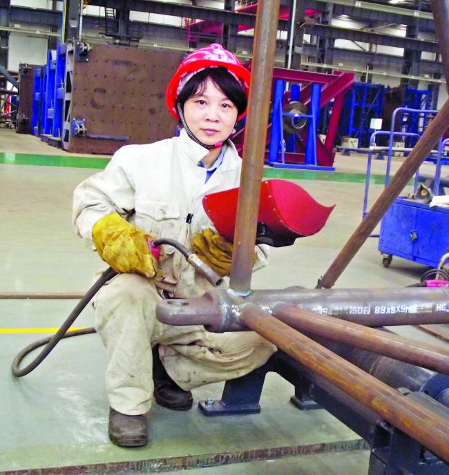 剛到班組時,她發(fā)現(xiàn)這幫大男人的工具柜亂七八糟,從小事上關(guān)心大家是她做的第一件事。整理工具柜、清潔茶水杯、把那些長期未穿又臟的工裝、勞保用品妥善處理,然后按照5S要求整齊擺放……通過她幾天辛勤的勞動,班組的環(huán)境大為改觀。員工開始認(rèn)真審視面前這個小女人。然而,員工們不知道,這只是個開始。古人云:“在其位、謀其政,司其職、負(fù)其責(zé)”,作為班長,她清楚知道自己的責(zé)任。生產(chǎn)一線班組的首要任務(wù)是質(zhì)量,在質(zhì)量面前,她斤斤計(jì)較、到處找“茬”,無論是臂架焊前的修磨、預(yù)熱,還是臂架上的一個飛濺顆粒,絕不馬虎。她在工作中與人協(xié)作又不失主見,他們班的那群小伙子個個折服于她嚴(yán)謹(jǐn)?shù)墓ぷ鲬B(tài)度:在工作中不敷衍了事、不推卸責(zé)任,精益求精??吹奖奂苌稀昂细瘛眰z字,是她一天中最開心的時刻。前段時間生產(chǎn)任務(wù)增加,但班組人手不夠,她作為一班之長,堅(jiān)持與男員工一起裹著厚重的工作服,埋頭于電焊火花之中,燒出了一條條美麗的焊縫。在班組年輕員工交流工作技藝時,她與大家分享了二十多年的電焊操作經(jīng)驗(yàn),讓他們燒出的焊縫漂亮又符合質(zhì)量標(biāo)準(zhǔn),少走了很多彎路。她的辛勤努力和付出,讓之前小看她的大男人們,有了很大的改觀。