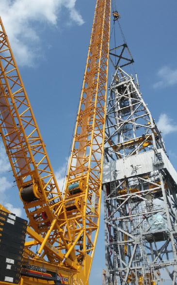 8月22日,在素有“小巴厘島”之稱的印尼巴淡島上,一臺(tái)徐工XGC16000履帶起重機(jī)伴隨著發(fā)動(dòng)機(jī)的轟鳴聲緩緩啟動(dòng),將重達(dá)123噸的鉆井支架吊起,并帶載行走30米,在60米的高空將支架安裝完成,圓滿完成首次吊裝任務(wù)。此次吊裝,XGC16000沒(méi)有辜負(fù)客戶的信任和期望,克服了當(dāng)?shù)貪駸岬墓ぷ鳝h(huán)境,圓滿完成任務(wù),拿下了出征海外的第一場(chǎng)勝利。
