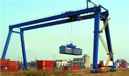 首先對港口的耗能機械設備做了全面的分析和預測,找到了港口行業(yè)應用最廣泛,使用頻率最高的機械設備---龍門吊。龍門吊又稱為門式起重機,是橋式起重機的一種變形。主要用于室外的貨場、料場貨、散貨的裝卸作業(yè)。它的金屬結構像門形框架,承載主梁下安裝兩條支腳,可以直接在地面的軌道上行走,主梁兩端可以具有外伸懸臂梁。門式起重機具有場地利用率高、作業(yè)范圍大、適應面廣、通用性強等特點,在港口貨場得到廣泛使用。但是,傳統(tǒng)的龍門吊由柴油發(fā)動機組驅動,能量轉換效率低、能耗大、成本高。作業(yè)的同時,排放的廢氣黑煙和柴油機運轉時產生的巨大噪音以及柴油存放與使用中的環(huán)境污染也日益與嚴格的環(huán)保要求有一定的距離。
