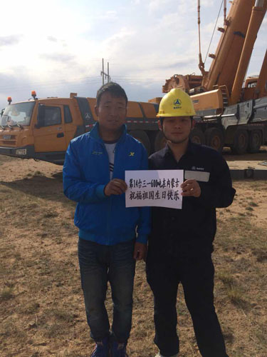 青春與祖國同行,奮斗成就夢想,在遠(yuǎn)離家鄉(xiāng)的內(nèi)蒙古呼倫貝爾大草原,我們將中國風(fēng)電建設(shè)的青春足跡堅(jiān)實(shí)的踏在腳下。在祖國六十五華誕來臨之際,三一第十四臺600噸設(shè)備的全體施工人員獻(xiàn)上對祖國最好的祝福!