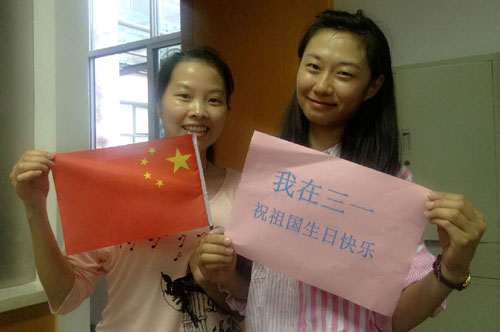 愛(ài)國(guó)的心情從不含蓄,熱情洋溢的中國(guó)心,青春洋溢的三一夢(mèng)。我的祖國(guó)就是萌萌噠!