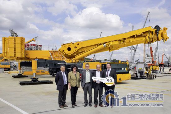 第五十臺(tái)利勃海爾LTM11200-9.1大型起重機(jī)于9月交付。最大負(fù)載能力為1200噸的移動(dòng)式起重機(jī)售給了日本公司Yamagata。該公司的總經(jīng)理Koichi Sambonsuge先生來(lái)到位于愛(ài)茵根的利勃海爾工廠視察他新購(gòu)置的設(shè)備。