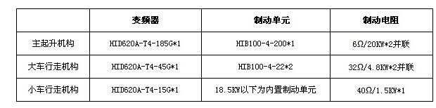 合康變頻根據(jù)現(xiàn)場實(shí)際情況,考慮到本類起重機(jī)的總工作時(shí)間并不長,能夠方便維護(hù),綜合兩者的性價(jià)比后,本項(xiàng)目采用第一種處理方案,具體制動單元及電阻器的選型請參考合康變頻《HIB100制動單元選型說明》。