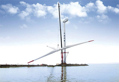 三一第一臺千噸級起重機SAC12000為上海電氣在安徽天長高郵湖進行2.0 兆瓦風(fēng)電吊裝項目,在長達半年的施工過程中,SAC12000安全高效完成各項吊裝任務(wù),其中難度最大的一吊是主臂起吊2.0 兆瓦風(fēng)電機艙組件穩(wěn)穩(wěn)提升至83 米的高空,起吊重量達100 噸。獲得了客戶的高度好評。