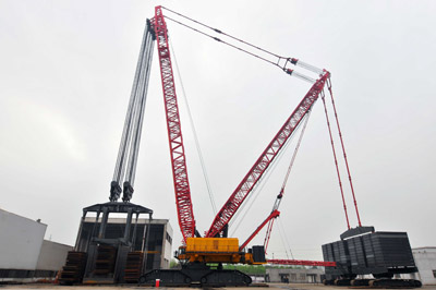 SCC36000A型3600噸履帶起重機于采用了先進的極限狀態(tài)設(shè)計法、數(shù)字化樣機和Top Down等設(shè)計方法,申請發(fā)明專利30項。目前參與山東榮成石島灣水壓堆CAP1400核電站工程。這是國家核電、三一重工、浙江火電,這不同行業(yè)的三大頂尖級企業(yè)強強聯(lián)合,可謂是吊裝歷史上最為壯觀的饕餮盛宴。