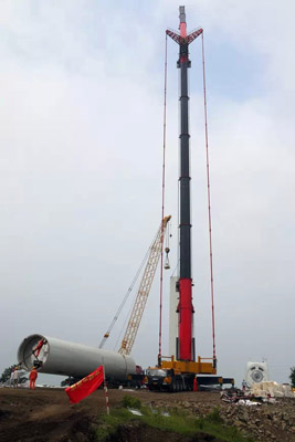 三一SSC1020全地面特種起重機(jī)參與中廣核“城頂山風(fēng)電場(chǎng)“的風(fēng)電吊裝工作,中廣核城頂山風(fēng)電場(chǎng)的2.0MW風(fēng)力發(fā)電機(jī)塔筒高約83.5米,三一SSC1020特種起重機(jī)6+3節(jié)起重臂全伸高度可達(dá)100米,輕松完成2.0MW風(fēng)力發(fā)電機(jī)的起吊安裝工作。
