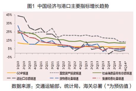 預計2015年拉動經濟的三駕“馬車”——投資、消費與外貿分別將呈現一減一穩(wěn)一增走勢,全年GDP增速有望實現7.2%,對我國港口整體脫離“探底階段”持謹慎態(tài)度,預計仍將維持小幅增長。
