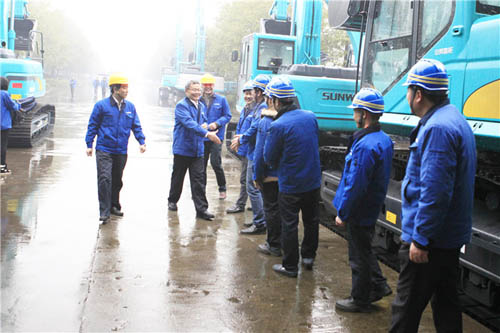 挖掘機(jī)生產(chǎn)車間,與制造體系員工親切握手,并仔細(xì)詢問了人員到崗、新年生產(chǎn)情況。何老師對隨行的挖掘機(jī)制造管理人員指出,挖掘機(jī)業(yè)務(wù)作為集團(tuán)戰(zhàn)略性業(yè)務(wù)板塊,必須狠下力氣,提升產(chǎn)品質(zhì)量的前提下,提高整體效率,保證交期,促進(jìn)銷售。