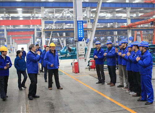 來到山河工業(yè)城,何老師親切慰問了地下工程研究院技術(shù)人員、車間一線員工等。何老師鼓勵大家新的一年加強(qiáng)對新產(chǎn)品的研發(fā),不斷改善和提升,提高生產(chǎn)效率與產(chǎn)品質(zhì)量,全面支持營銷。在威沃公司生產(chǎn)車間,何老師仔細(xì)視察了員工工作情況,指出配套件制造要上新臺階,為主機(jī)業(yè)務(wù)做好配套支持。