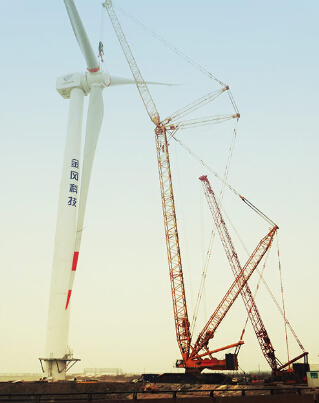 徐工金”劍指藍(lán)天,在這里,徐工XGC16000履帶起重機(jī)順利完成一臺6MW風(fēng)機(jī)的吊裝任務(wù)。此臺6MW風(fēng)機(jī)是國內(nèi)僅有的幾個樣機(jī)之一,其葉片長度77.7米,是目前國內(nèi)最大的風(fēng)葉。
