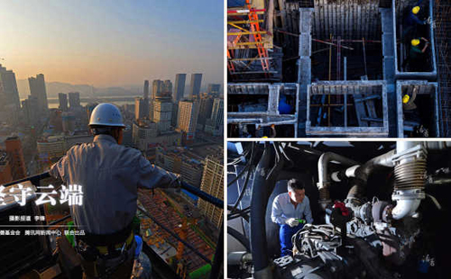 湖南省長(zhǎng)沙市,塔吊工人正在136米高的平臺(tái)上工作,這里是建設(shè)中的第一高樓。他們抬頭可見藍(lán)天,低頭城市宛如密集的電子儀器在他們腳下。但同時(shí),這又是一個(gè)極其危險(xiǎn)的工作,稍不注意,便會(huì)粉身碎骨。