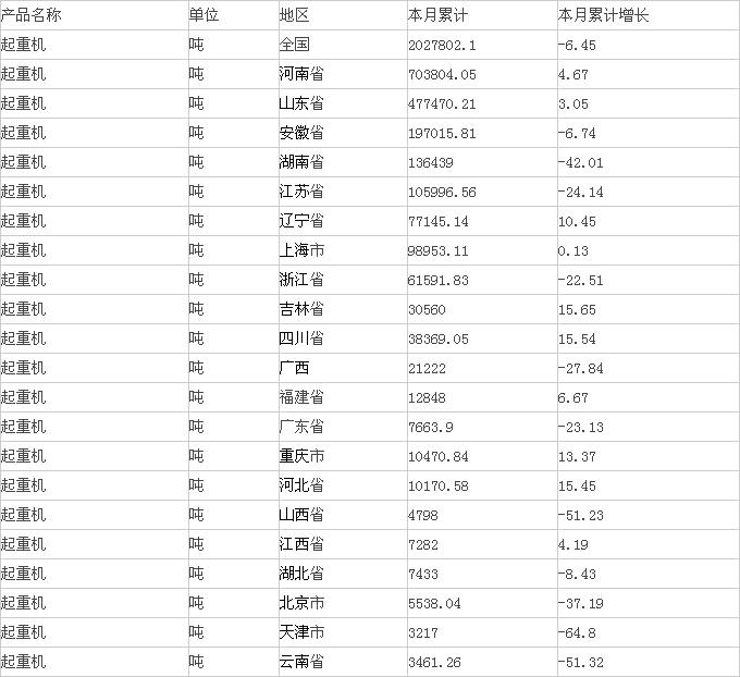 中商產(chǎn)業(yè)研究院數(shù)據(jù)顯示:2015年1-3月生產(chǎn)起重機(jī)202.78萬噸,同比下降6.45%。分析整理:中商產(chǎn)業(yè)研究院