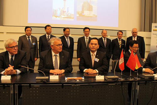 6月2日,在振華重工歐洲交流會(huì)及上海商委“上海•漢堡商務(wù)論壇”期間,振華重工總裁、黨委副書(shū)記黃慶豐,德國(guó)HHLA集團(tuán)董事長(zhǎng)Klaus-Dieter Peters簽署了HHLA碼頭3臺(tái)岸橋供貨合同。中共中央政治局委員、中共上海市委書(shū)記韓正、中國(guó)駐德國(guó)大使史明德、中共中央對(duì)外聯(lián)絡(luò)部副部長(zhǎng)陳鳳翔、德國(guó)漢堡市第一市長(zhǎng)朔爾茨,中國(guó)交建副總裁、裝備制造與海洋重工事業(yè)部總經(jīng)理、振華重工董事長(zhǎng)宋海良等共同見(jiàn)證了簽約儀式。