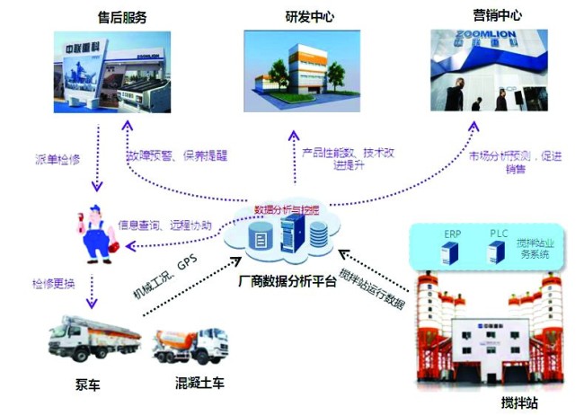 在當(dāng)前行業(yè)持續(xù)低迷的背景下,中聯(lián)重科混凝土機(jī)械公司推行了一系列改革措施,物聯(lián)網(wǎng)應(yīng)用就是助推產(chǎn)品升級換代重大戰(zhàn)略之一。為解決部分產(chǎn)品設(shè)備管理難、運(yùn)營效率低等問題,分公司于2014年初啟動了GPS深化應(yīng)用項(xiàng)目,力圖打造一個(gè)自主研制的“ERP+GPS”的智能調(diào)度系統(tǒng),目前已取得系列成果。