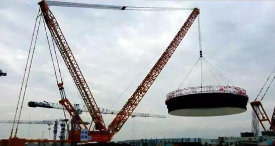 2015年08月16日8時16分,我國自主研發(fā)的三代核電“華龍一號”首臺示范工程——福建福清核電5號機組鋼襯里模塊第一部分整體成功吊裝就位,這是繼2015年05月07日福清核電5號機組核島筏基混凝土澆筑后,福清核電5號機組實現(xiàn)的第二個重要里程碑節(jié)點。業(yè)主方中核集團以及吊裝總承包中核機械公司對此次吊裝高度重視,通過不斷研究比較,最終確定由徐工型號為XGC28000的2000噸級履帶起重機完成此次重要吊裝。