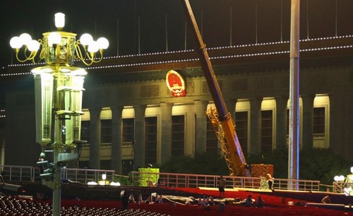 徐工助力閱兵式天安門廣場主題山水花壇的搭建