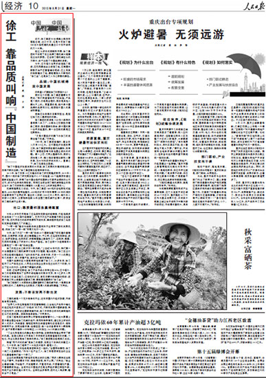機(jī)械制造靠實(shí)力說(shuō)話。今天,徐工集團(tuán)1600噸的全地面輪式起重機(jī)、4000噸的履帶起重機(jī)、400噸的礦用卡車和臂展100米的消防設(shè)備都保持了世界紀(jì)錄,營(yíng)業(yè)收入突破1000億元人民幣,海外收入突破23億美元,主要指標(biāo)連續(xù)26年全國(guó)工程機(jī)械行業(yè)第一,躋身全球工程機(jī)械行業(yè)前5強(qiáng)。