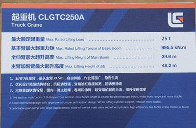 柳工自主研發(fā)的新一代國Ⅳ排放汽車起重機產品TC250A,其綜合性能行業(yè)領先,具有一流的起重性能、優(yōu)越的行駛性能以及卓越的操控性能。