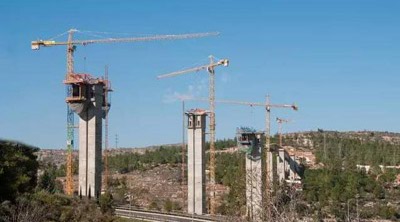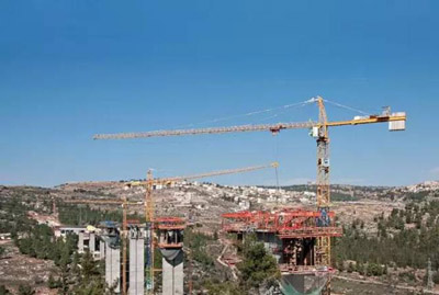 在寬闊的Arazim山谷上建造新大橋的項目很復雜,崎嶇的地形和高聳的地勢要求精準的規(guī)劃和起重機選擇。項目造價3920萬美元,包括打通山谷兩頭的隧道,要幾乎連續(xù)不斷地進行吊裝,以按時并在預算內(nèi)完成作業(yè)。