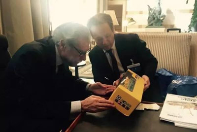 徐工集團(tuán)王民董事長(zhǎng)向美國(guó)原商務(wù)部部長(zhǎng)古鐵雷斯先生介紹徐工產(chǎn)品模型