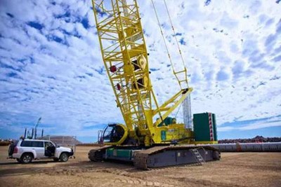 三一履帶起重機(jī)SCC8300C正在西澳卡拉薩的wheatstone項(xiàng)目進(jìn)行施工。SCC8300成功參與此項(xiàng)工程的施工,標(biāo)志著三一產(chǎn)品已具備了在最高安全及施工標(biāo)準(zhǔn)的世界級(jí)工程中與國(guó)際標(biāo)桿媲美的實(shí)力。