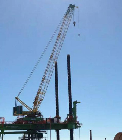 SCC8300履帶吊,在15米高變動(dòng)平臺(tái)施工,作為施工工地唯一的高空作業(yè)設(shè)備,承擔(dān)著環(huán)軌吊重、直線導(dǎo)軌吊重、管道的裝運(yùn)與轉(zhuǎn)運(yùn)起吊工作等多工況起吊任務(wù)。