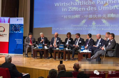 9月24日下午,三一重工代表在德國柏林出席了首屆“中德經(jīng)濟(jì)對話”,與到會的中德兩國政府及企業(yè)界人士就兩國經(jīng)貿(mào)合作和共同關(guān)心的問題進(jìn)行了對話與交流?!爸械陆?jīng)濟(jì)對話”,由德國基民盟經(jīng)濟(jì)委員會(Wirtschaftsrat der CDU)和德國中國商會共同舉辦。中國駐德國大使史明德、德聯(lián)邦經(jīng)濟(jì)與能源部國務(wù)秘書馬赫尼希(Matthias Machnig)及其他政企界人士共200余人參與了本次會議。