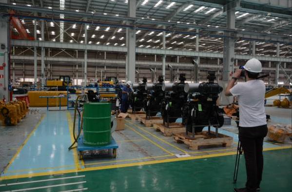 中央電視臺(tái)記者在徐工巴西現(xiàn)代化的生產(chǎn)制造基地取景